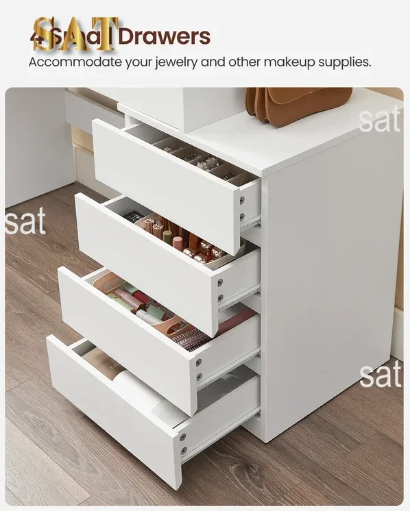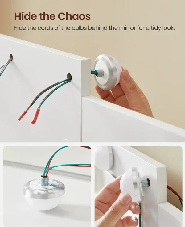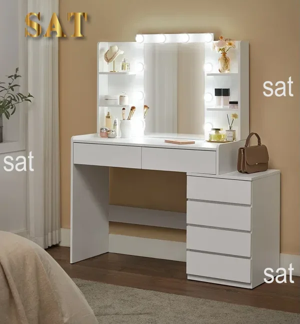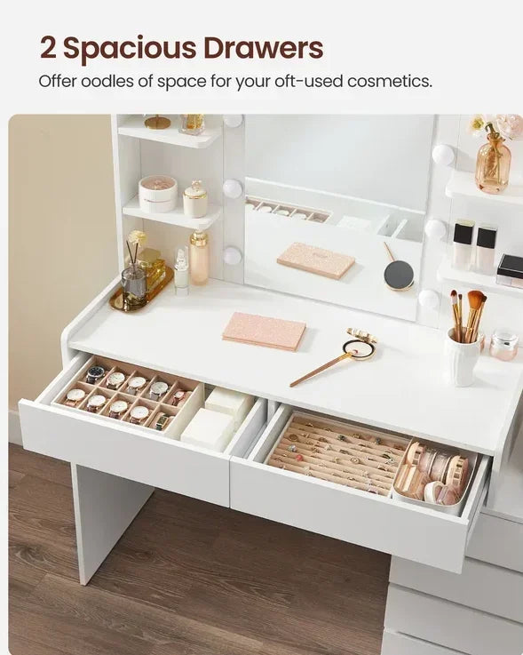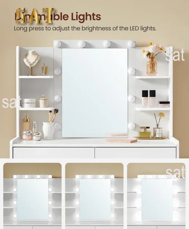 Vanity Desk with Light Bulbs and Shelves Mirrored Vanity Dressing Table for Bedroom Make up Table