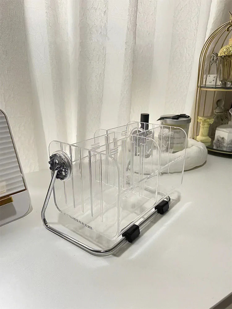 Equipped with a rotatable feature, this storage box offers convenience in accessing items stored inside, making it ideal for desktop use.
