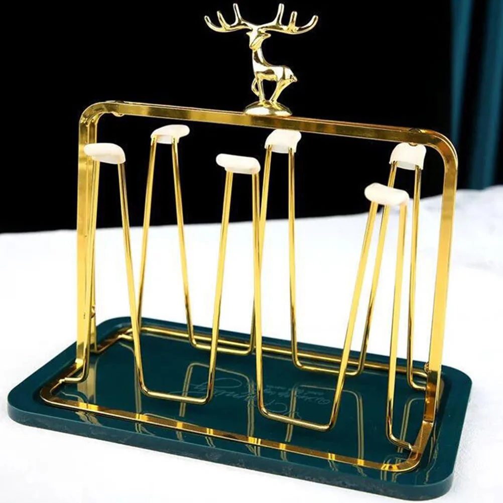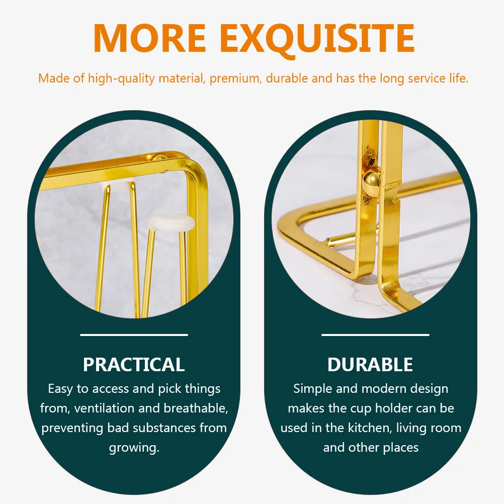 Glass Cup Stand Metal Cup Holder Desktop Rack with Drain Tray Practical Kitchen Living Room Storage Organizer