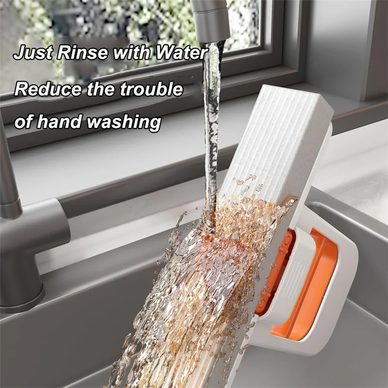 Space-Smart Design: This 360° rotating mini mop for kitchen counter stands vertically or hangs compactly. At 1.2lbs with foldable joints, the cleaning sponges system saves 70% storage space compared to standard mops